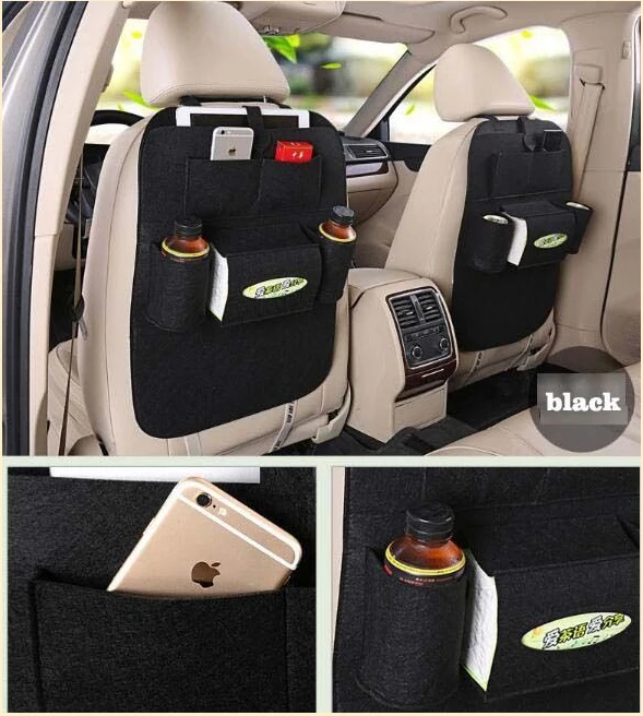 2pcs stowing Tidying Multi Pocket Felt Car Styling Back Seat black Storage Pouch Bottle Magazine Cu